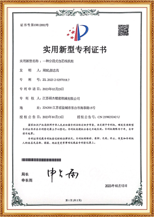 Utviklet den første Three Core Back Twisting Stranding and Taping-maskinen for å løse kundens prosessproblemer i høyfrekvent tvinning. Vridningen, pluss sin egen 100 % tilbakevridningseffekt, gjør den originale wiretestytelsen bedre.