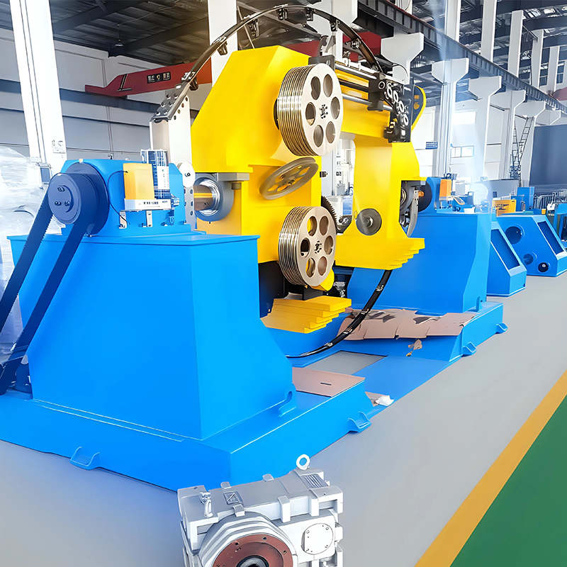 ■ Presis stranding-kontroll: Gjennom presis mekanisk overføring og kontroll (slik som cradle-style take-up og pay-off), er vridningsstigningen (vridningstettheten) og vridningsretningen svært konsistente og kontrollerbare, noe som er avgjørende for å sikre de elektriske egenskapene, fleksibiliteten og den strukturelle stabiliteten til sluttkabelen. Styring av spenningsbalanse: Den doble buestrukturen, kombinert med et spenningsjusteringssystem, styrer effektivt den dynamiske spenningen til flere tråder under høyhastighets vridning, forhindrer at individuelle tråder blir for stramme eller løse, reduserer risikoen for brudd og sikrer rundheten og rettheten til den trådede tråden.